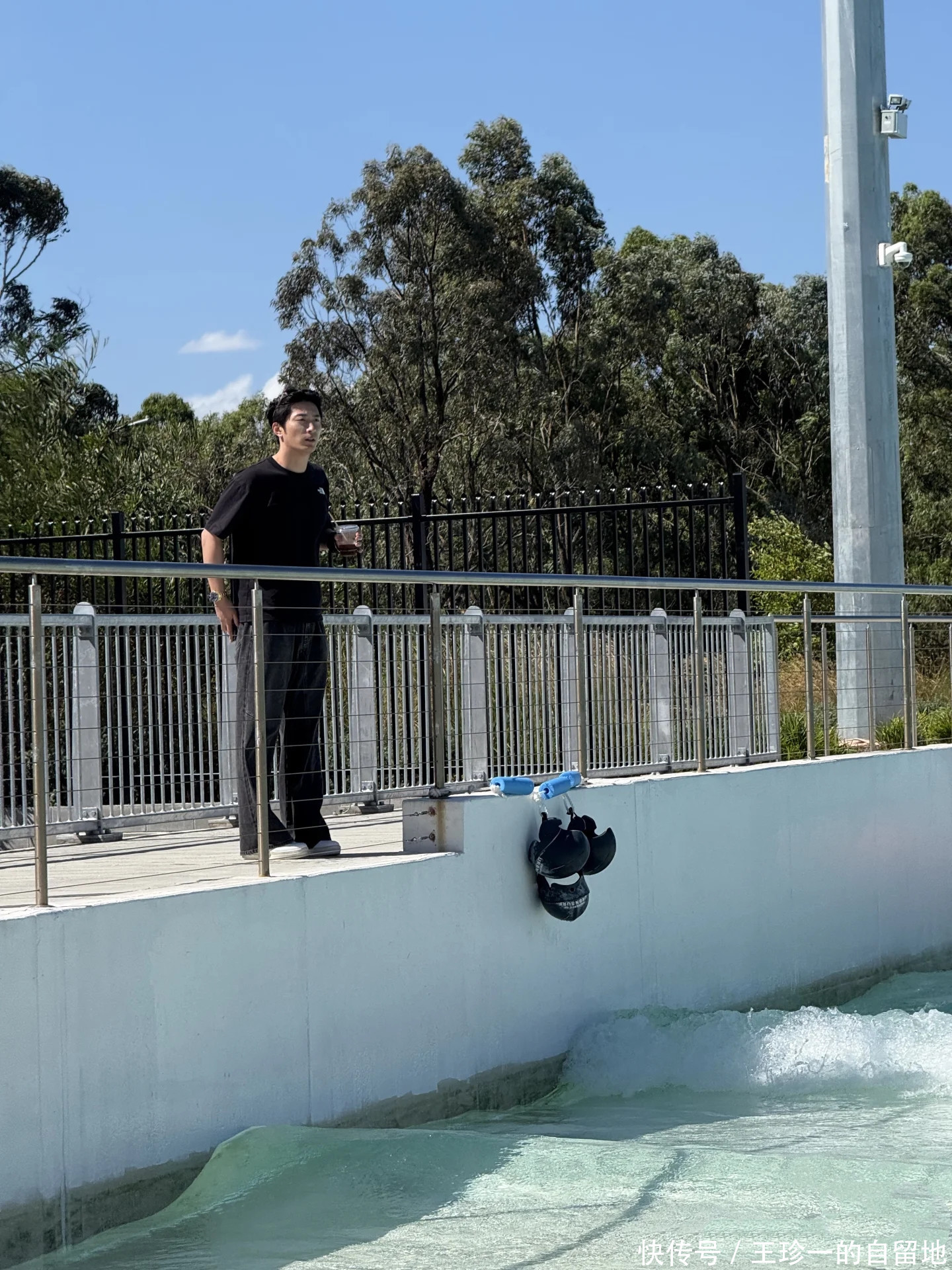 而窦骁穿着黑色短袖、穿着白色鞋子,头发上还放有太阳镜,他的头发一点都没有湿,手上还拿着一杯饮料。不难猜测,窦骁没有下水,他主要是陪伴何超莲。